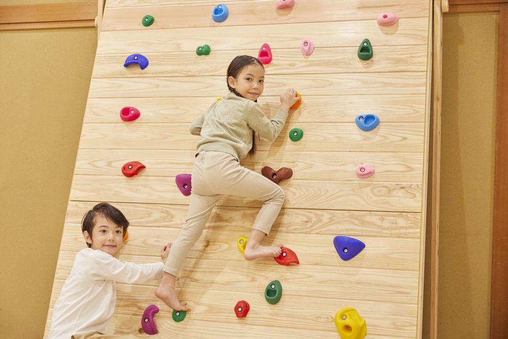 在缓冲性高的地板上也考虑到安全方面,孩子们可以放心地挑战。