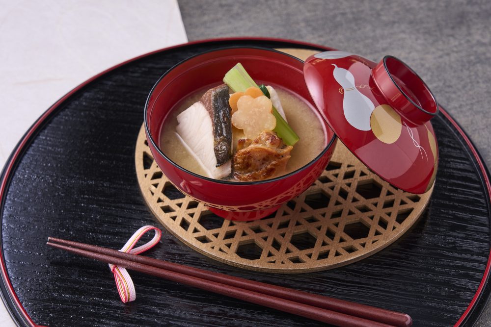 고소하게 구워낸 각 떡을, 가시와 닭의 맛이 겹치는 된장 완성의 국물에.네채의 맛을 맞추어, 해의 시작에 어울리는 깊은 맛의 한 그릇 「볶음」의 설날 메뉴를 준비하고 있습니다.